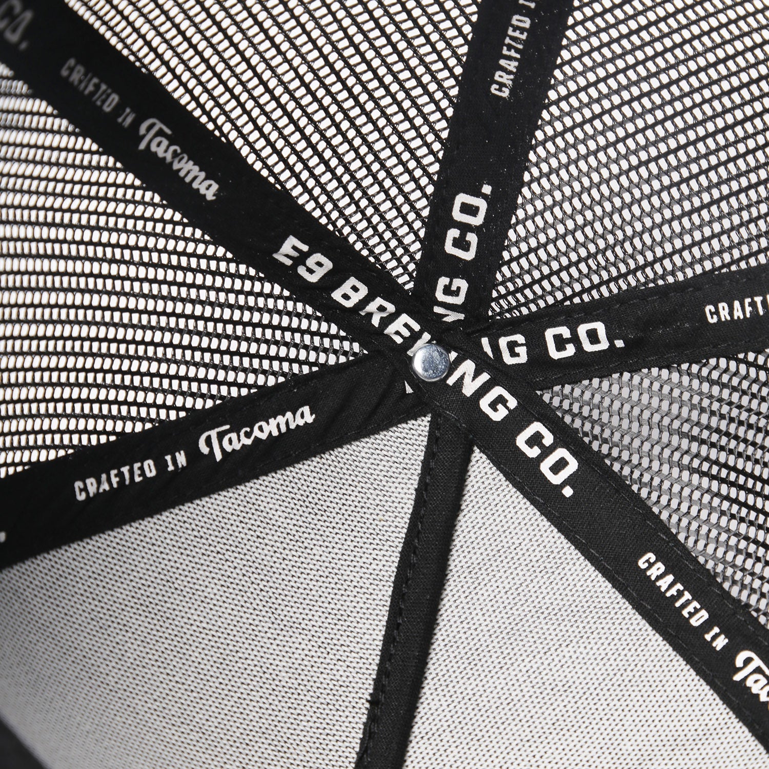 It's all in the details. We opted for a tonal seam tape with white repeated E9 logos. Custom Inside seam tape is a create way to communicate brand messaging. Here we highlight E9's "Crafted In Tacoma" tagline.